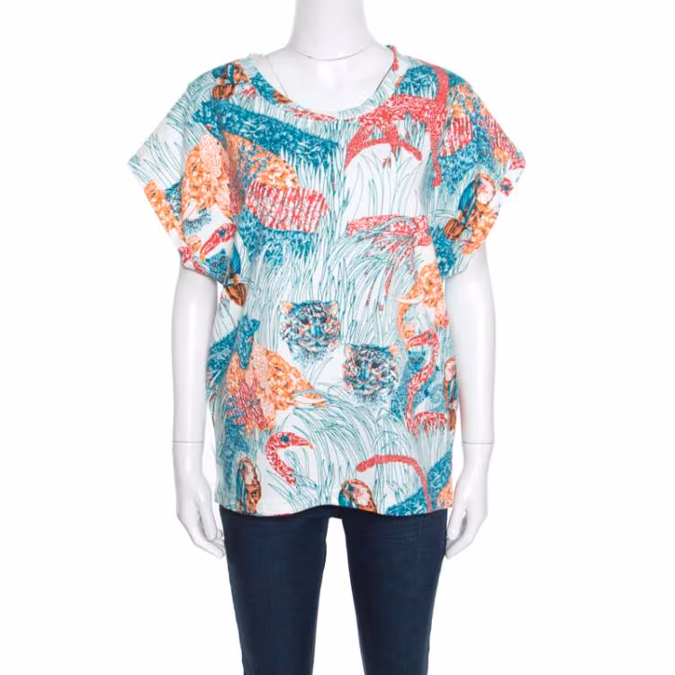 مملوكة مسبقًا توب بول آند جو قطن مطبوع متعدد الألوان أكمام دولمان XL