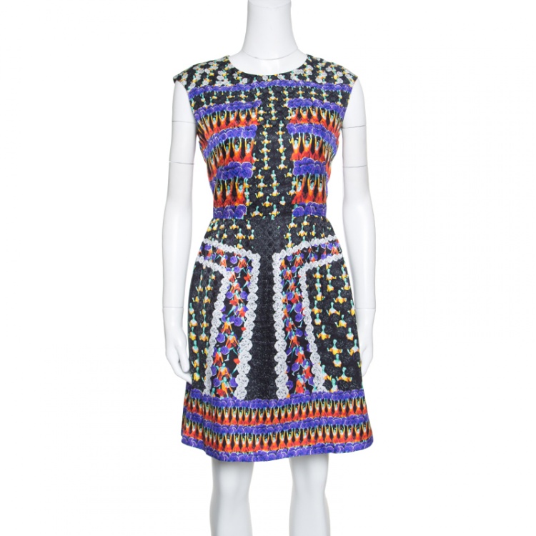 مملوكة مسبقًا فستان بيتر بيلوتو أليكسا فانتازيا شيرليدر حرير مطبوع بلا أكمام M