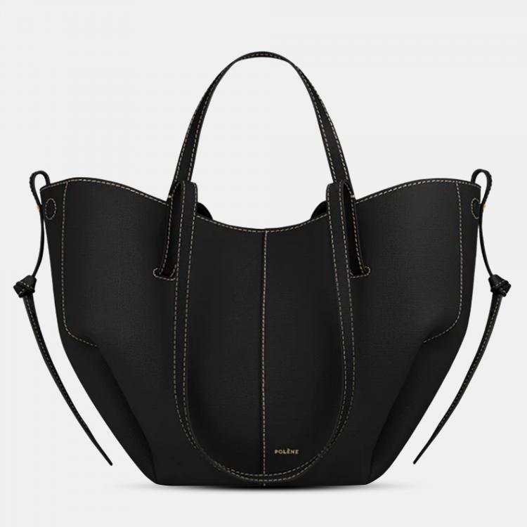 حقيبة كتف بولين سيم ميني من جلد العجل المحبب بإصدار أسود مع درزات إكرو