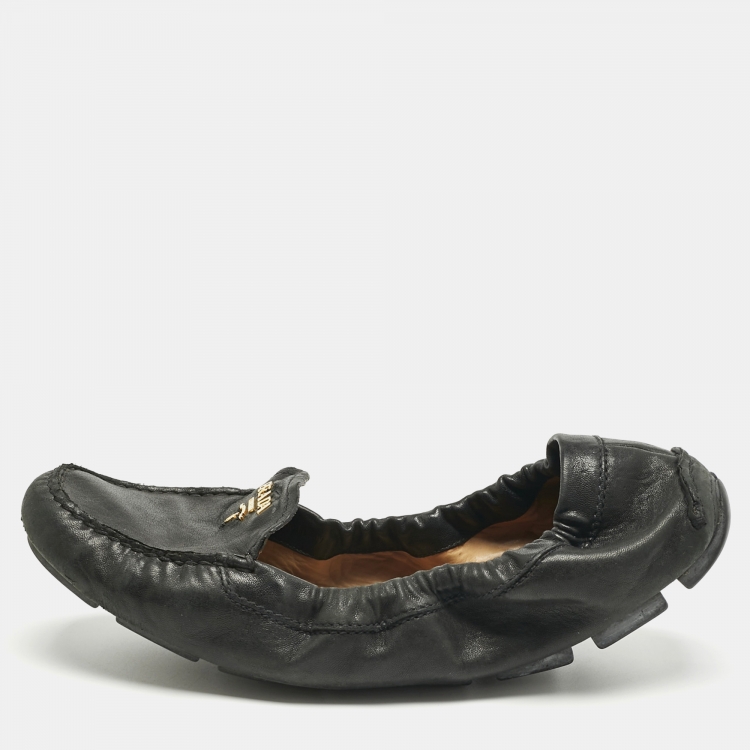 حذاء لوفرز برادا كرنيش جلد أسود مقاس 38.5