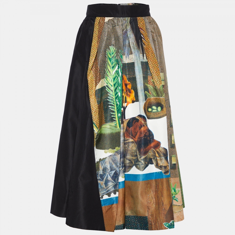 Pre Owned Prada Black Printed Silk Patch Detail Germinal Midi Skirt S