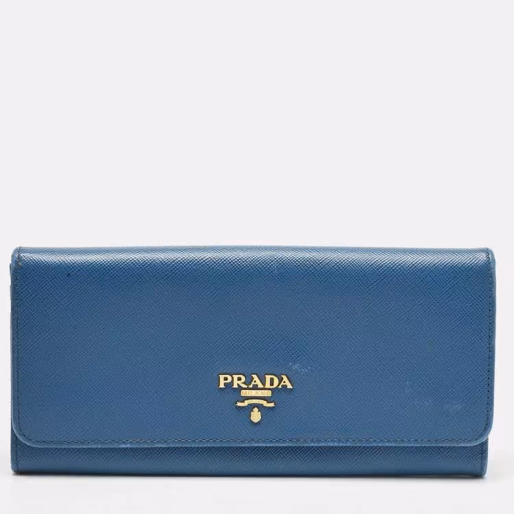 Pre Owned محفظة برادا جلد سافيانوا أزرق بغطاء قاري