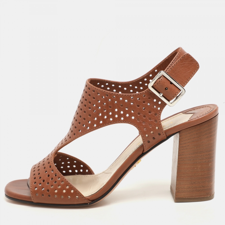مملوكة مسبقًا صندل برادا جلد بني مثقب سير كاحل مقاس 38