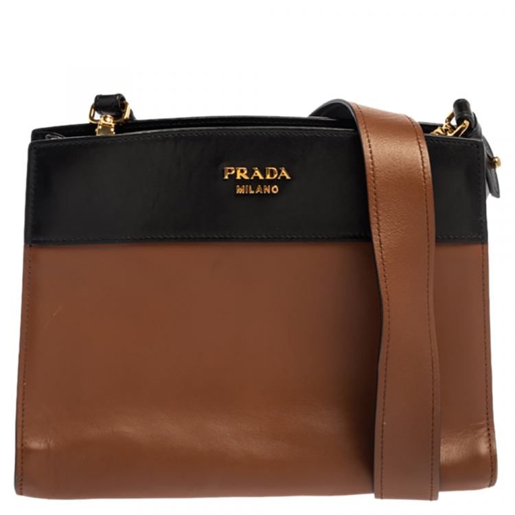 مملوكة مسبقًا حقيبة ماسنجر برادا جلد أسود/بني