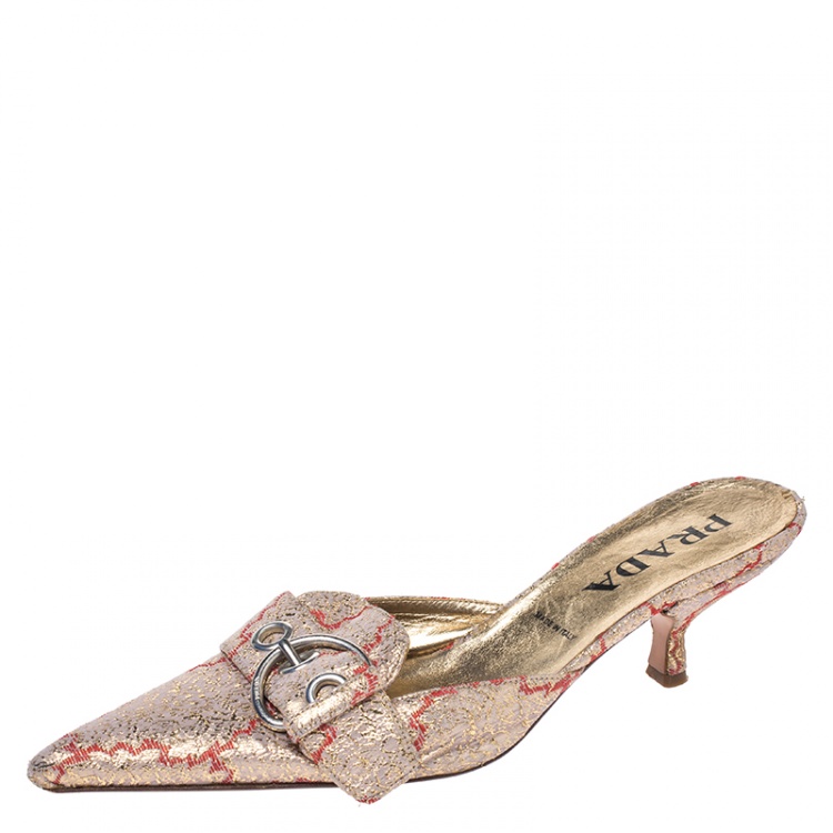 صندل سلايد برادا حرير مزركش زهور أحمر/ ذهبي مقاس 38