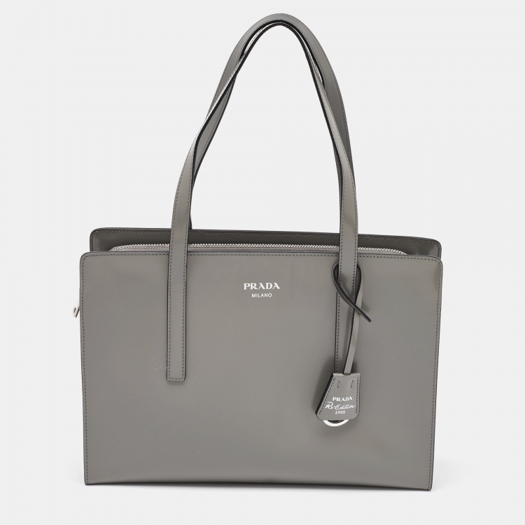 حقيبة يد برادا رمادية ملساء جلدية إعادة إصدار 1995