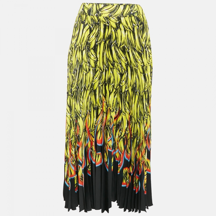 مملوكة مسبقًا Prada Multicolor Banana Print Plisse Midi Skirt M