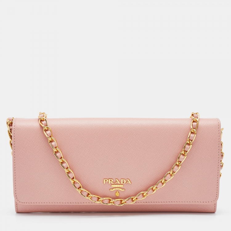 Prada Pink Saffiano Leather Wallet on Chain