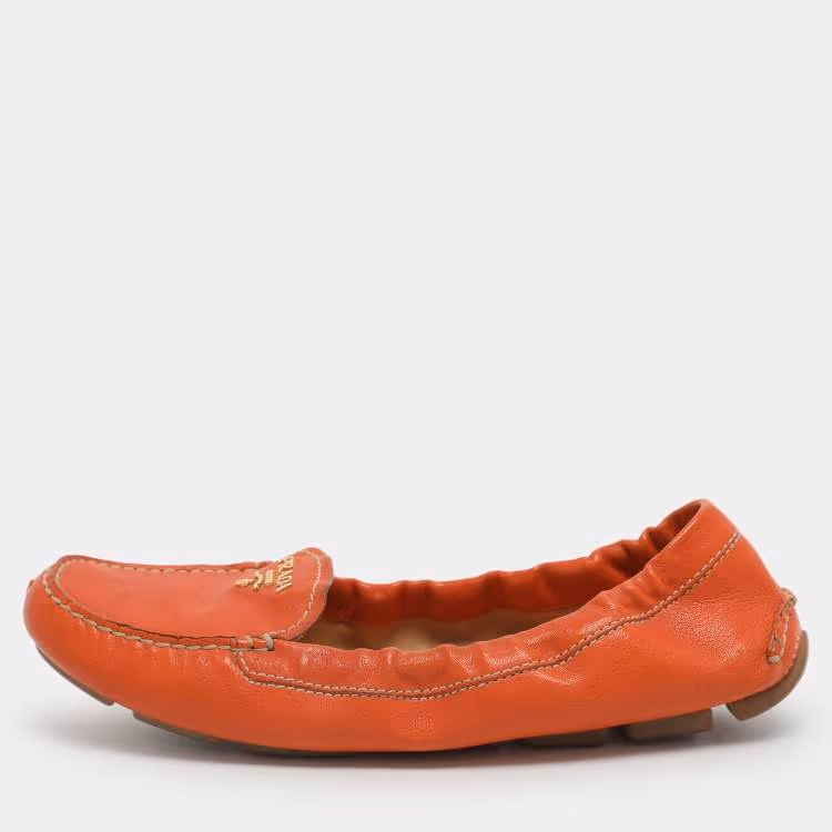 حذاء لوفرز برادا جلد برتقالي مجعد مقاس 37.5