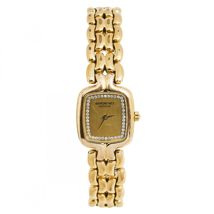 Pre Owned ساعة يد نسائية ريموند ويل 5877/1 ستانلس ستيل مطلي ذهب أصفر شامبين 20 مم