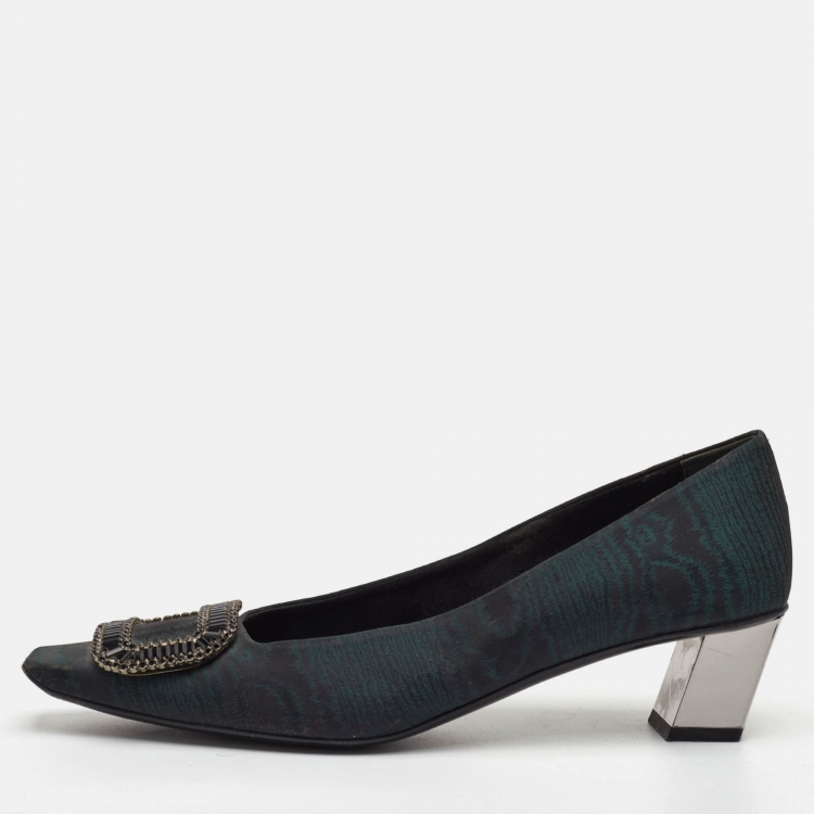 حذاء كعب عالي روجر فيفييه مزين بحلية كريستالية قماش أخضر داكن/أسود مقاس 40.5