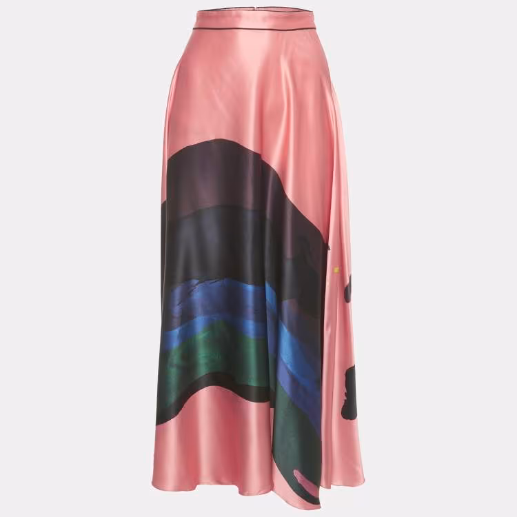 Pre Owned تنورة روبكساندا حرير مطبوعة متعددة الألوان أمارانث ميدي وسط