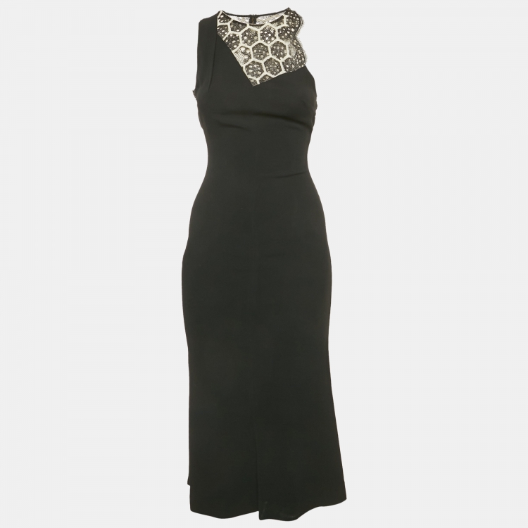 مملوكة مسبقًا فستان رولان موريه بلا أكمام كريب أسود بتفاصيل دانتيل ميدي صغير