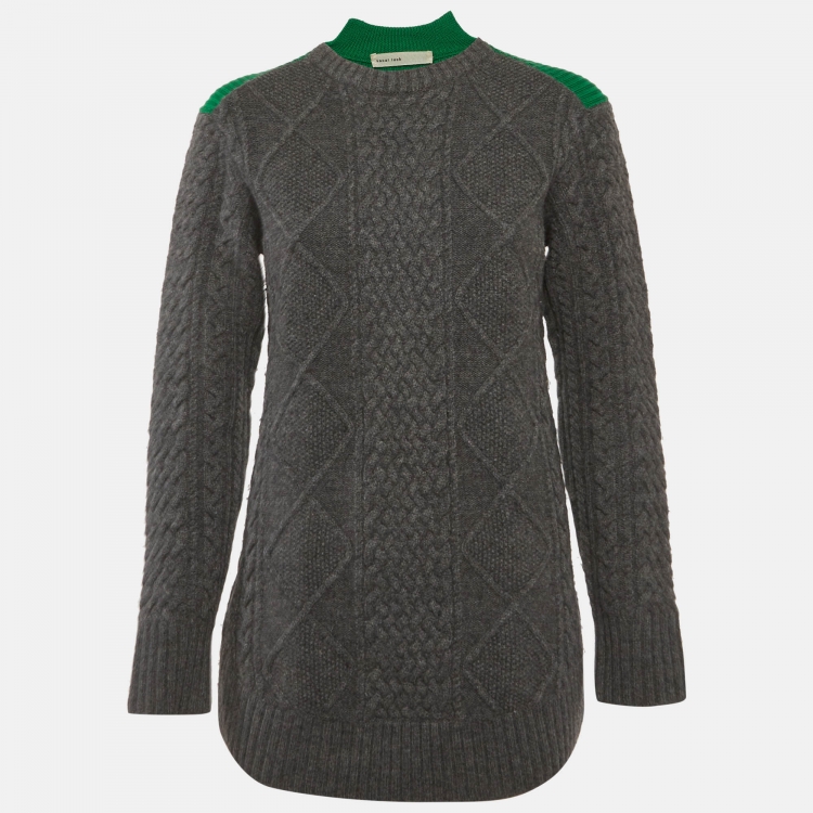 Pre Owned سويدَر ساكاي حظ كابل كت أخضر/رمادي مقاس متوسط (ميديوم)
