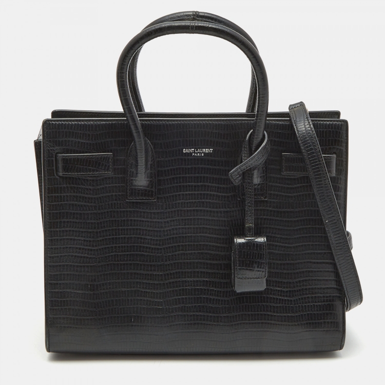 Saint Laurent Black Lizard Embossed Leather Baby Classic Sac De Jour Tote