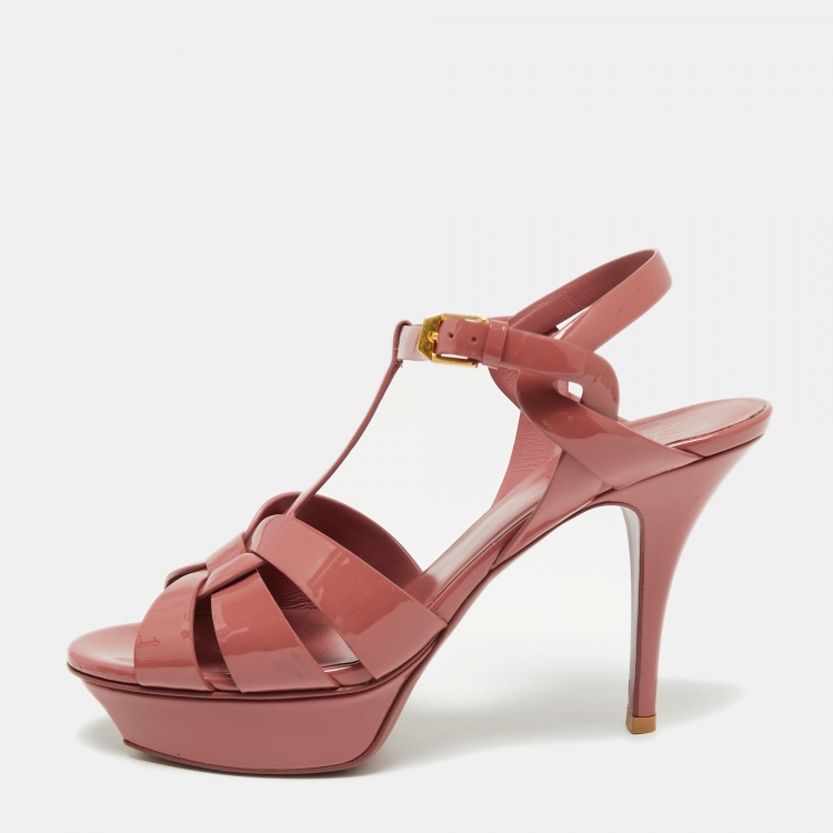 Pre Owned صندل سان لوران تربيوت جلد وردي لامع نعل سميك مقاس 39