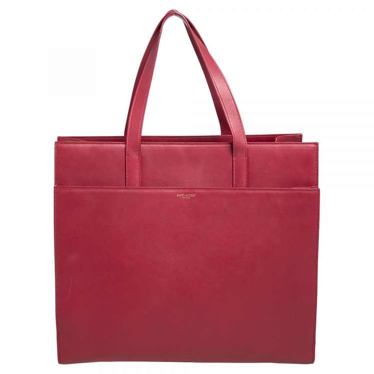 حقيبة يد توتس سان لوران جلد أحمر بجيب أمامي