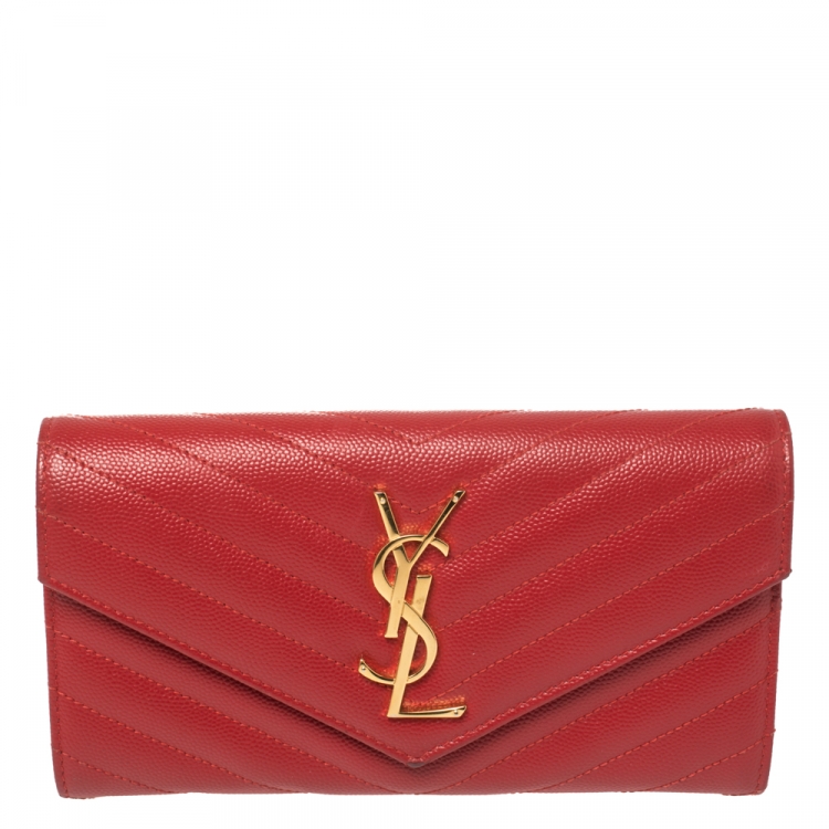 محفظة سان لوران جلد أحمر ماتيلاس مونوغرامي تصميم الظرف