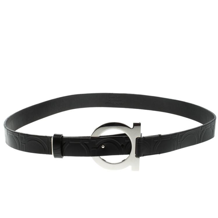 مملوكة مسبقًا حزام سالفاتوري فيراغامو إبزيم شعار سويدي وجلد أسود 80 سم