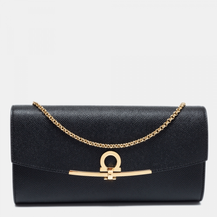 حقيبة كلتش سالفاتوري فيراغامو غانسيو جلد أسود بكبسون بقلاب