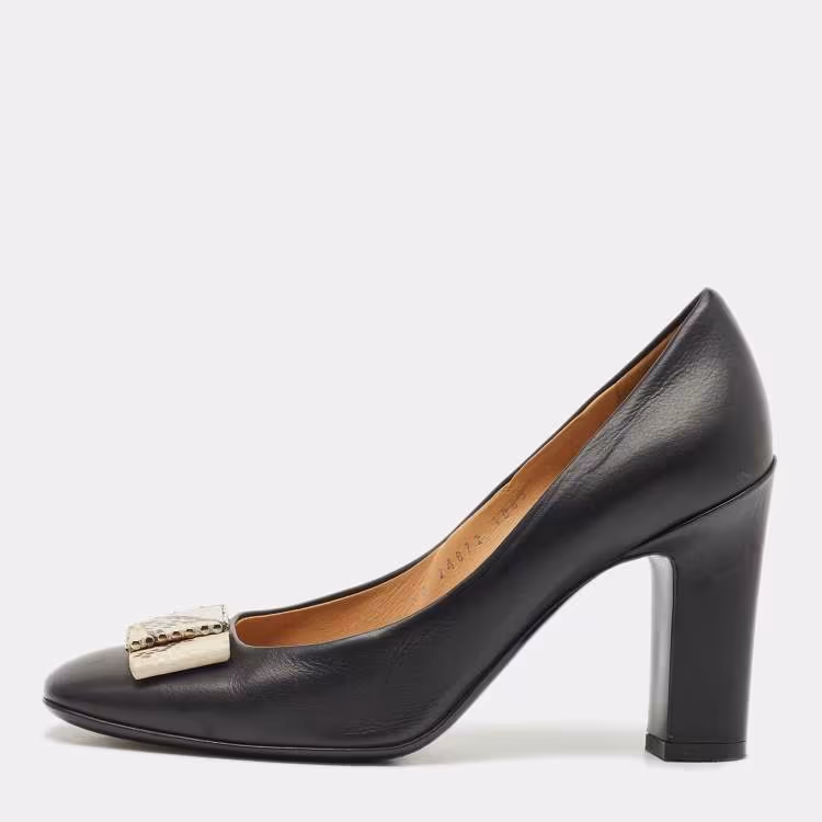 حذاء كعب عالي سالفاتوري فيراغامو كعب عريض فيرا بو جلد منقوش سحلية أسود مقاس 39