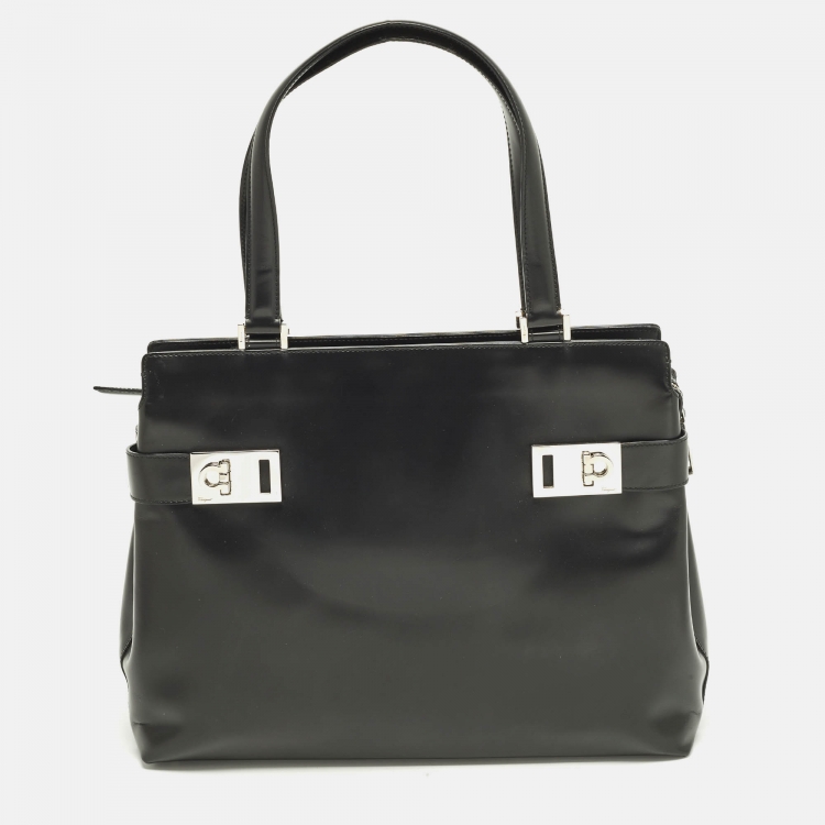 Pre Owned حقيبة يد سالفاتوري فيراغامو غانتشيني جلد أسود ناعمة