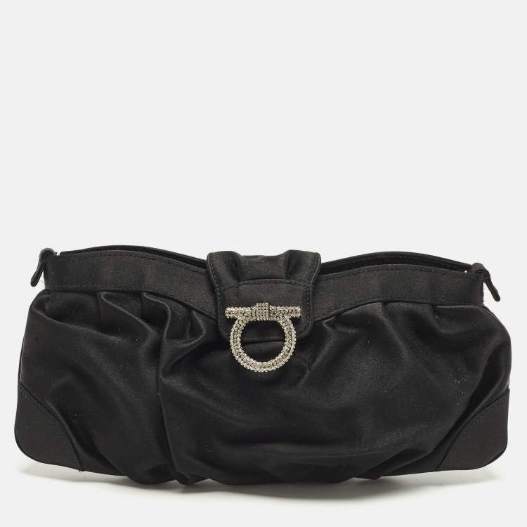 Pre Owned حقيبة كلتش سالفاتوري فيراغامو غانسيني سوداء ساتان مرصعة بالكريستال