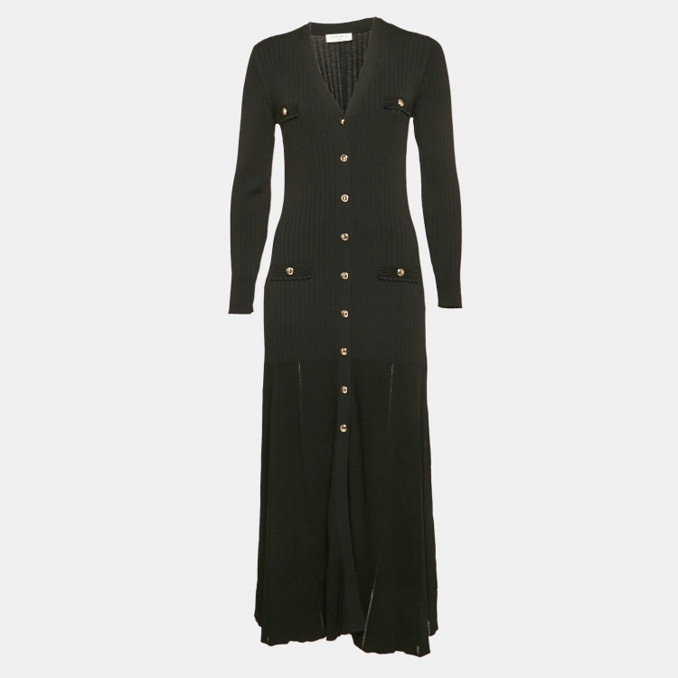 مملوكة مسبقًا Sandro Black Rib Knit Button Front Full Sleeve Midi Dress L
