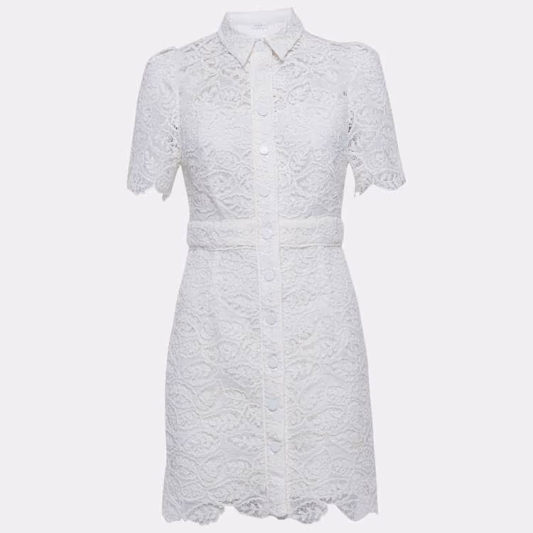 Pre Owned فستان ساندرو أوف وايت دانتيل جوبير زهري ميني كبير