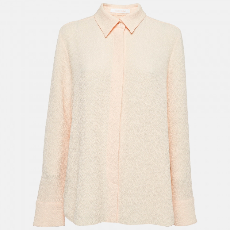 Pre Owned قميص سي باي كلوي متجاعد نسيجي مطوي شامبانيا وردي مقاس وسط - ميديم