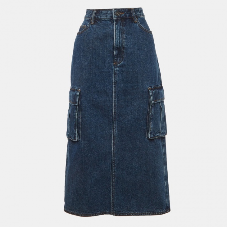 Pre Owned تنورة ميدي سيلف بورتريه دنيم أزرق كارغو مقاس متوسط - ميديوم
