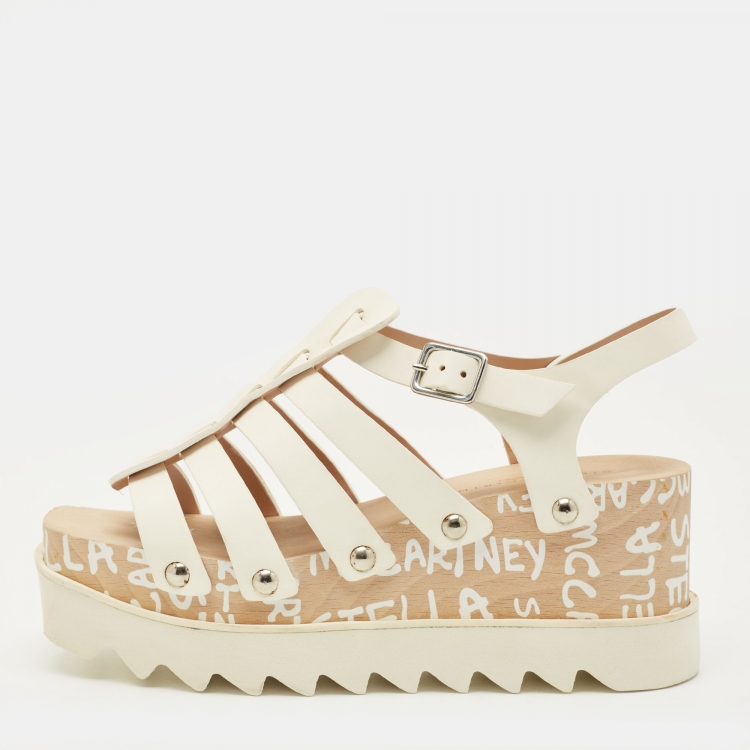 مملوكة مسبقًا صندل ستيلّا مكارتني جلد أبيض إيد كيرتس إديشن إيلسي كعب بحزام للكاحل مقاس 38