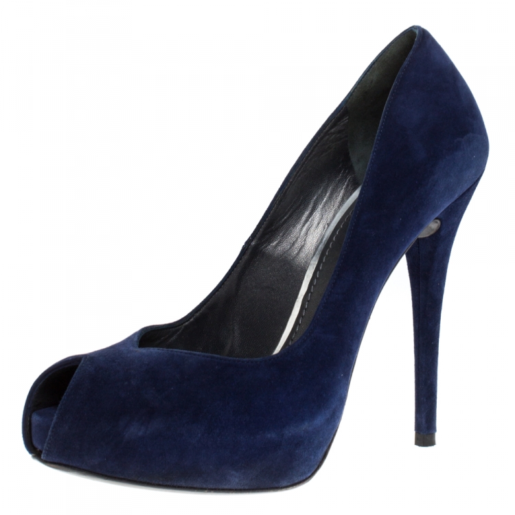 Pre Owned حذاء كعب عالي ستيوارت وايتزمان نعل سميك مقدمة مفتوحة سويدي أزرق  مقاس 40.5