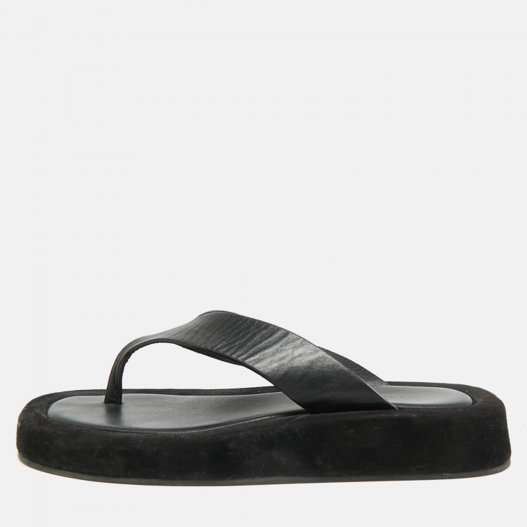 Pre Owned شبشب ذو رو جينزا جلد وأسود أبيض مقاس 36
