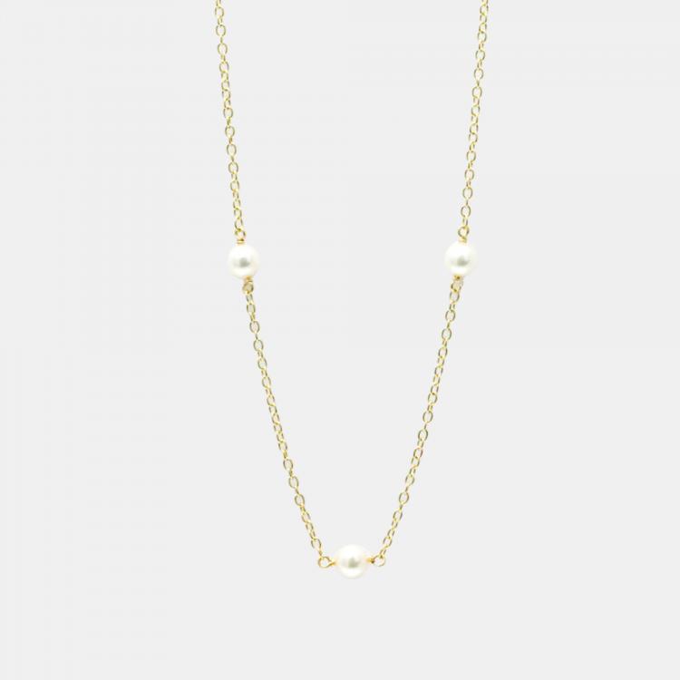 Tiffany & Co. 18K Yellow Gold and Pearl Station Necklace