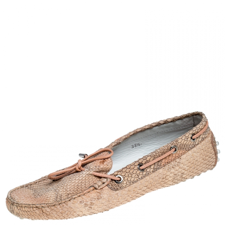 Pre Owned حذاء لوفرز تودز "غومينو" جلد ثعبان بيج مقاس 38.5