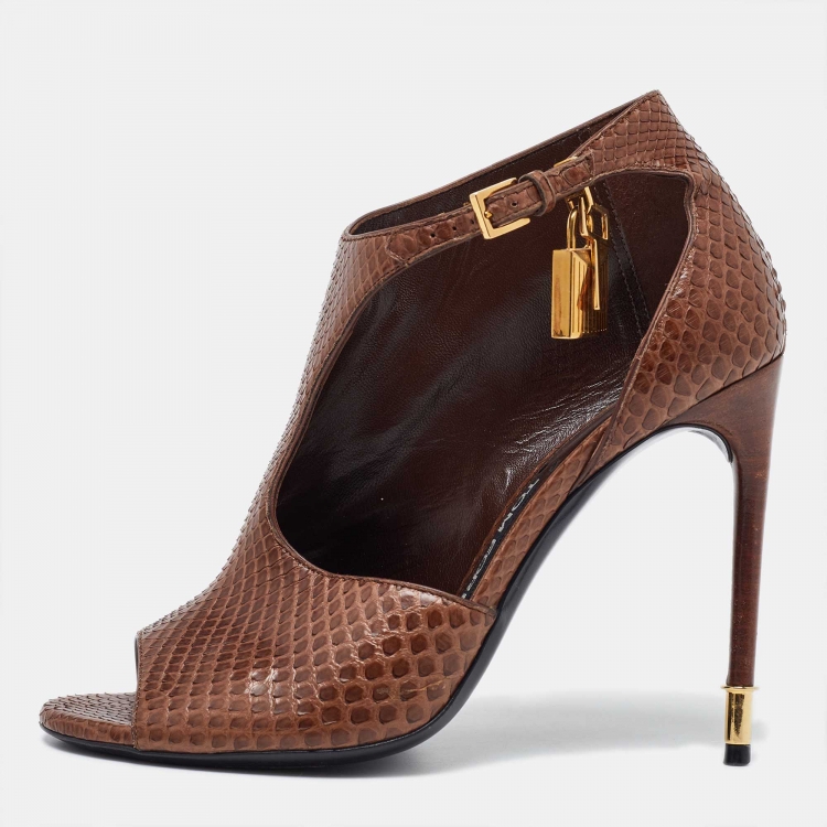 حذاء كعب عالي توم فورد جلد ثعبان أبيض مقدمة مفتوحة مقاس 39