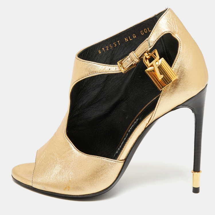 مملوكة مسبقًا حذاء بوت توم فورد جلد ذهبية سير ملتف حول الكاحل قفل مقاس 37