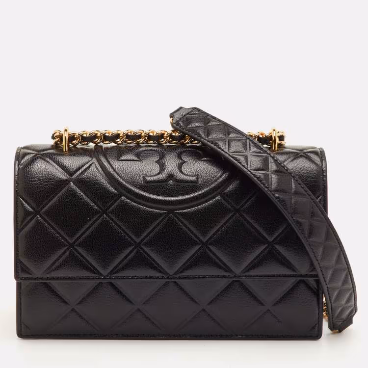 Pre Owned حقيبة كتف توري برش فليمينغ جلد أسود صغيرة متحولة