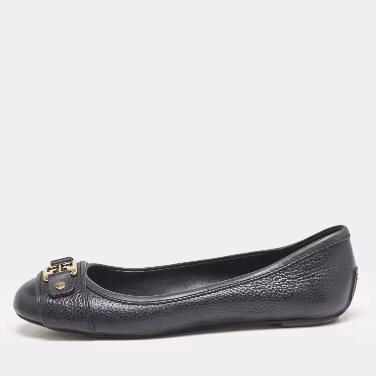 مملوكة مسبقًا حذاء باليرينا فلات توري بورش جلد أزرق بحري مقاس 36.5