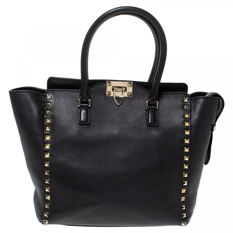 Pre Owned حقيبة يد شوبر فالنتينو روكستاد جلد سوداء صغيرة