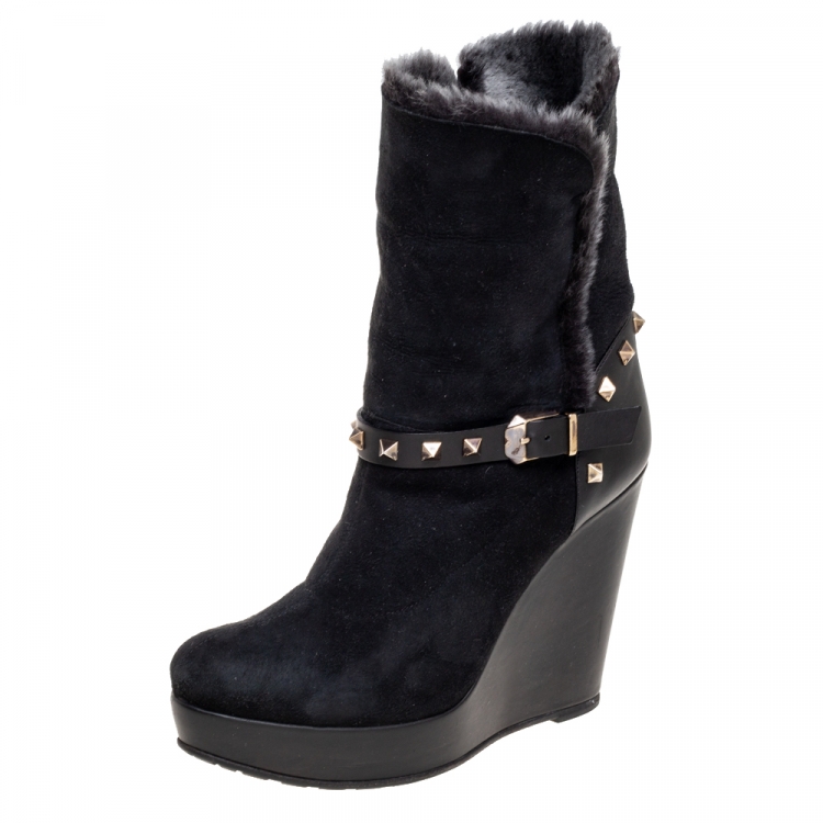 حذاء بوت فالنتينو كعب روكي روكستد سويدي أسود مقاس 38.5