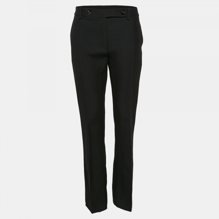 مملوكة مسبقًا Valentino Black Wool and Silk Stud Buttoned Waist Trousers M