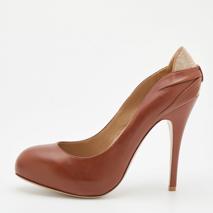 Pre Owned حذاء كعب عالي فالنتينو جلد بني مقدمة مستديرة نعل سميك مقاس 40