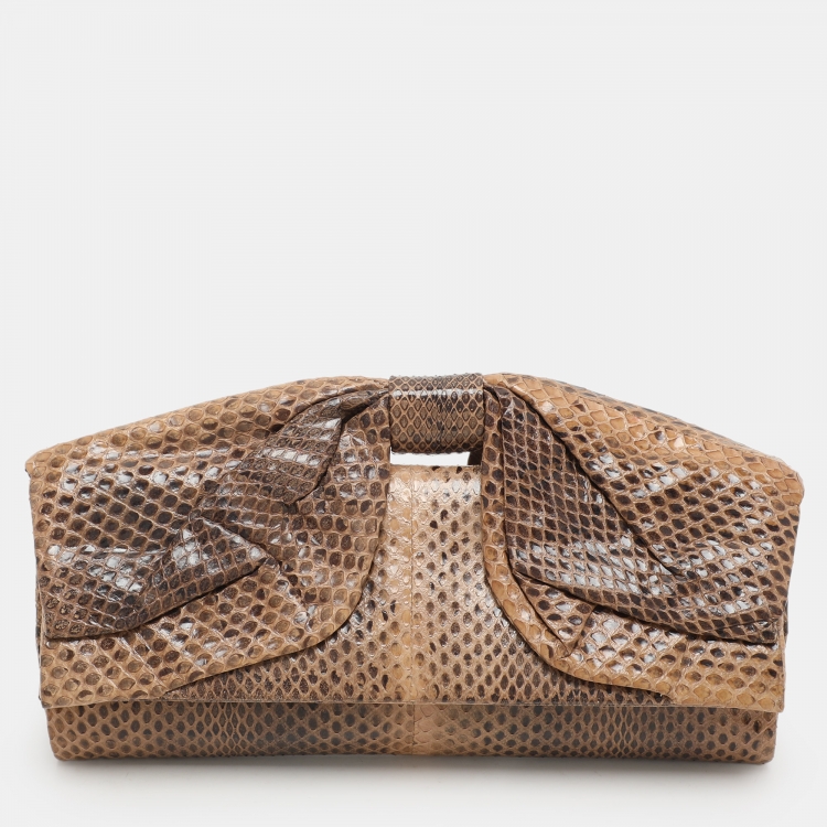 Pre Owned محفظة فالنتينو بيج/بني بيثون مع فيونكة