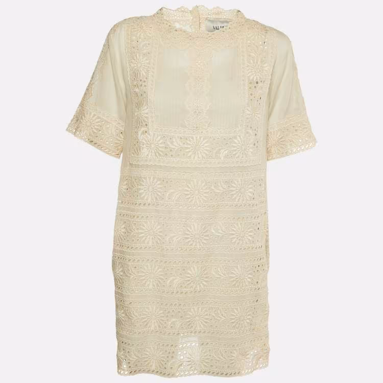 Pre Owned فستان فالنتينو قطن دانتيل كريمي بفتحات صغيرة مقاس صغير (سمول)