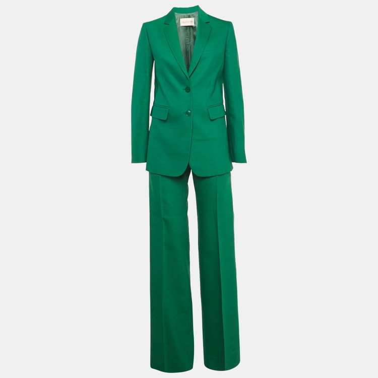 Pre Owned بدلة فالتنينو حرير أخضر سترة وبنطلون صغيرة