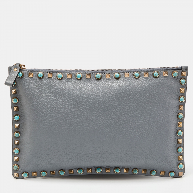 Pre Owned حقيبة صغيرة فالنتينو كورن فلور روكستد جلد أزرق متوسطة بسحاب