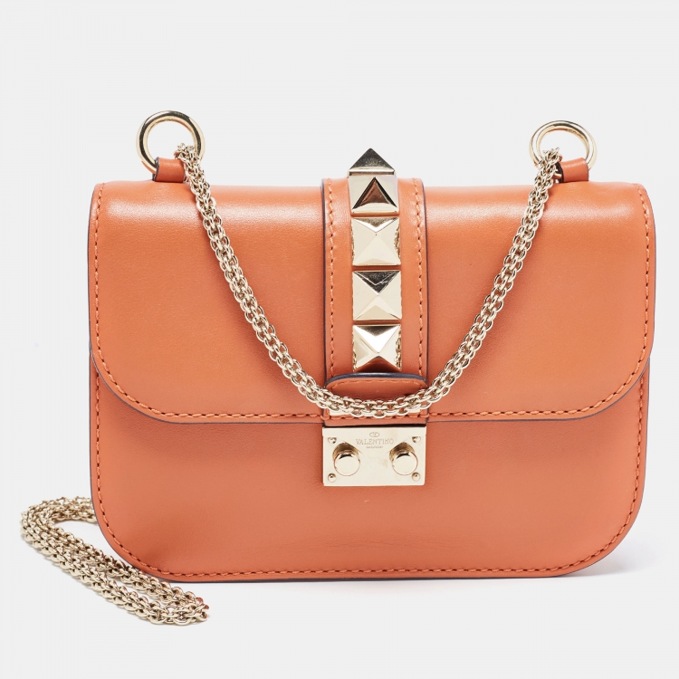 Valentino Tan Leather Small Rockstud Glam Lock Flap Bag