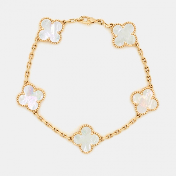 سوار فان كليف آند أربلز فينتدج الهمبرا عرق اللؤلؤ 5 حليات ذهب أصفر عيار 18